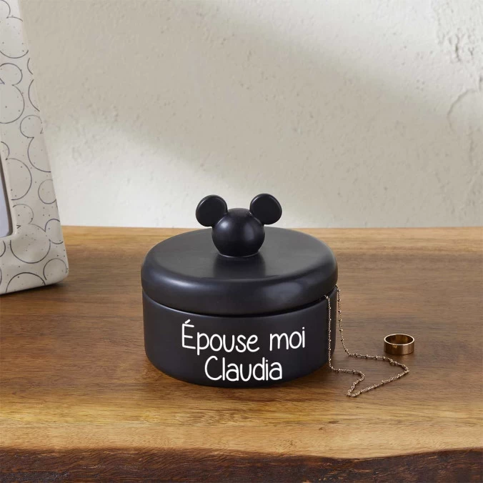 À l’effigie de Mickey, le célèbre personnage de Disney, cette boîte à bijoux est personnalisée gratuitement au texte de votre choix.