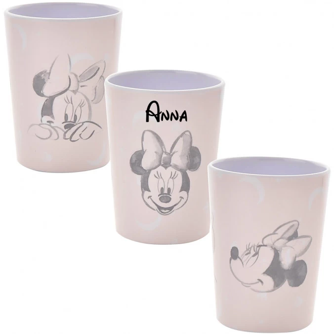 Ce coffret repas à l’effigie de Minnie, la célèbre petite souris de Disney, contient 1 gobelet personnalisé gratuitement par gravure au prénom de votre enfant.