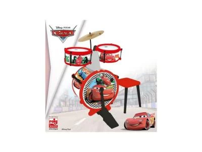 Jeu éducatif musical Disney CARS Batterie et tabouret (Grosse caisse, deux tambours, cymbale, pedale, baguettes)