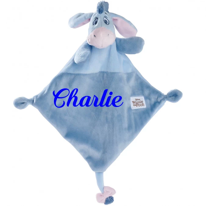 À l’effigie de l’âne Bourriquet, le célèbre ami de Winnie L’Ourson, ce doudou plat est personnalisé gratuitement par broderie au prénom de votre bébé.
