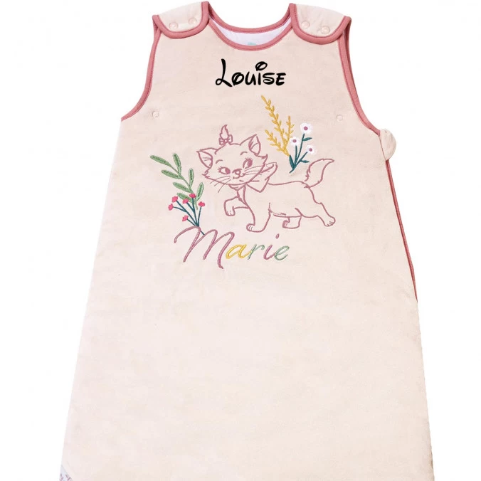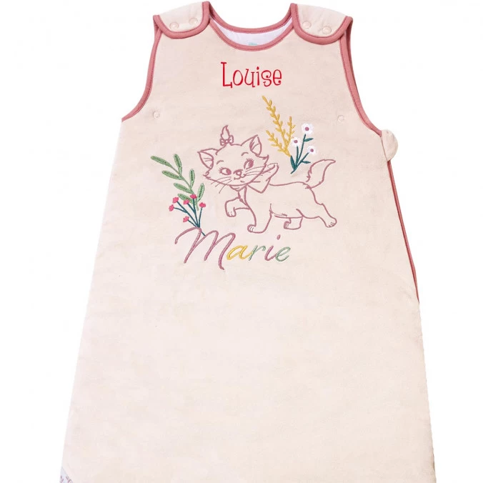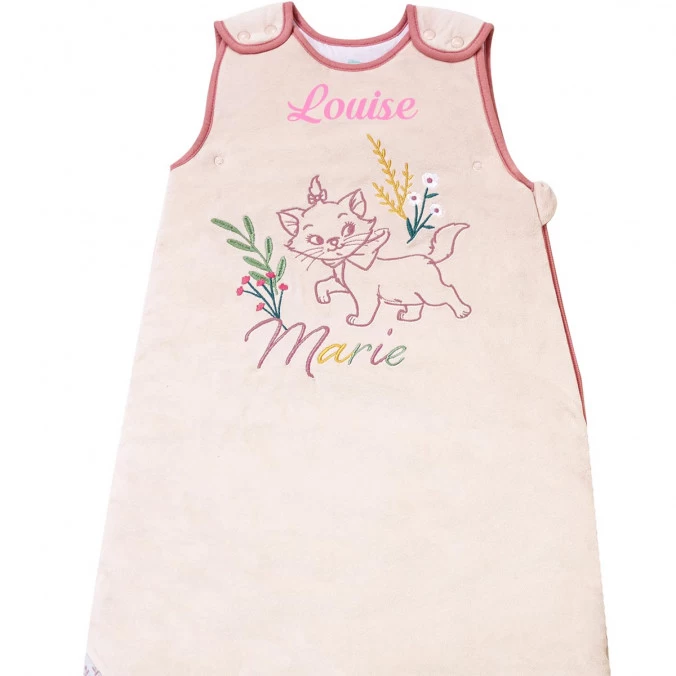 De la collection Sweet Marie, le célèbre personnage des Aristochats, cette gigoteuse deuxième âge évolutive est personnalisée gratuitement par broderie au prénom de votre fille.