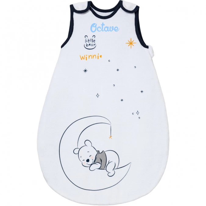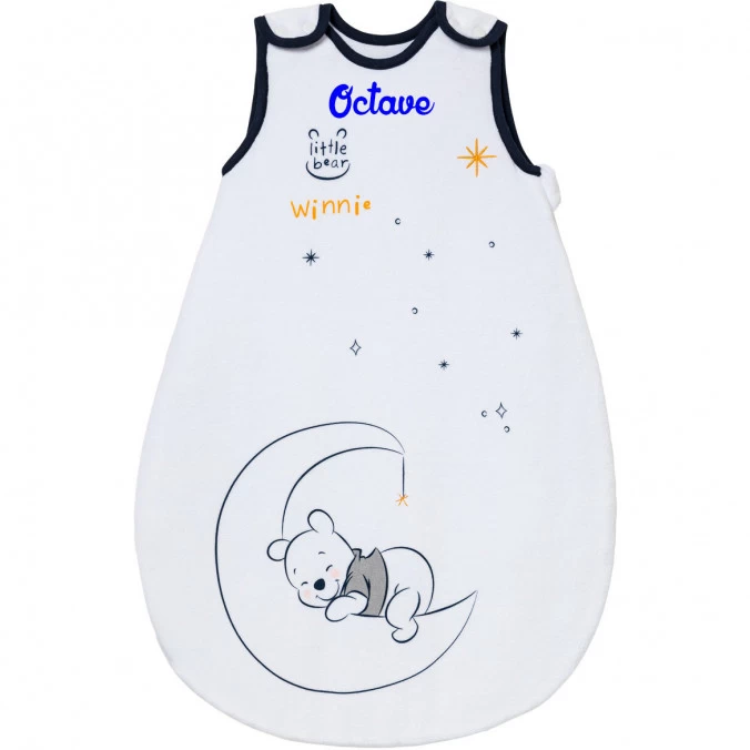 Personnalisée par broderie au prénom de votre garçon, découvrez cette gigoteuse naissance du thème The Moon à l’effigie de Winnie l’ourson.
