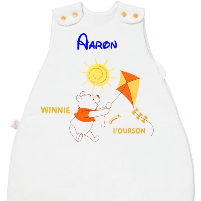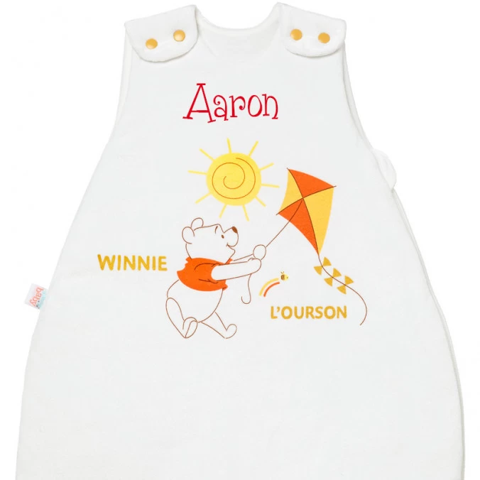 De la collection Winnie rétro, cette gigoteuse naissance est personnalisée gratuitement par broderie au prénom de votre garçon.
