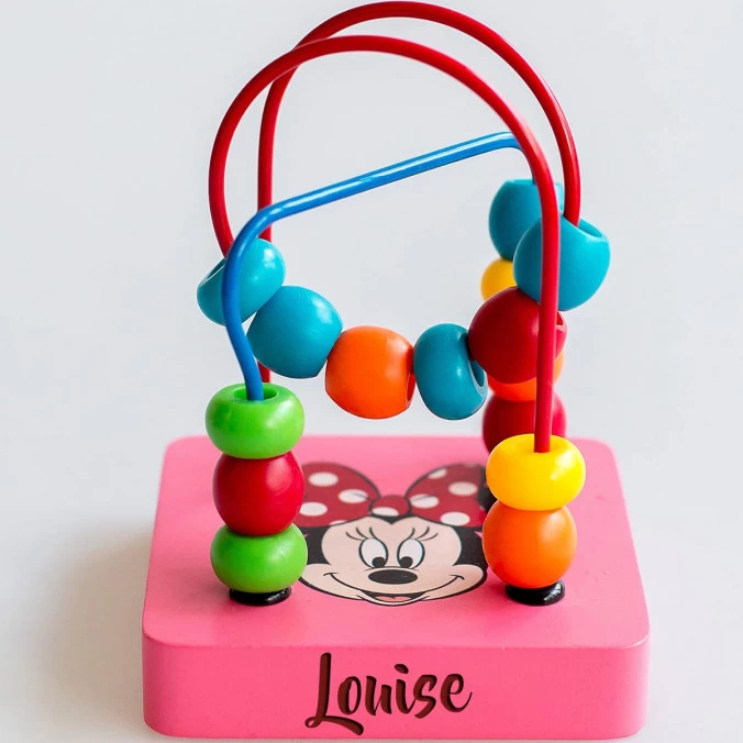 Découvrez ce labyrinthe en bois premier âge à l’effigie de Minnie, le célèbre personnage de Disney, personnalisé gratuitement au prénom de votre enfant.
