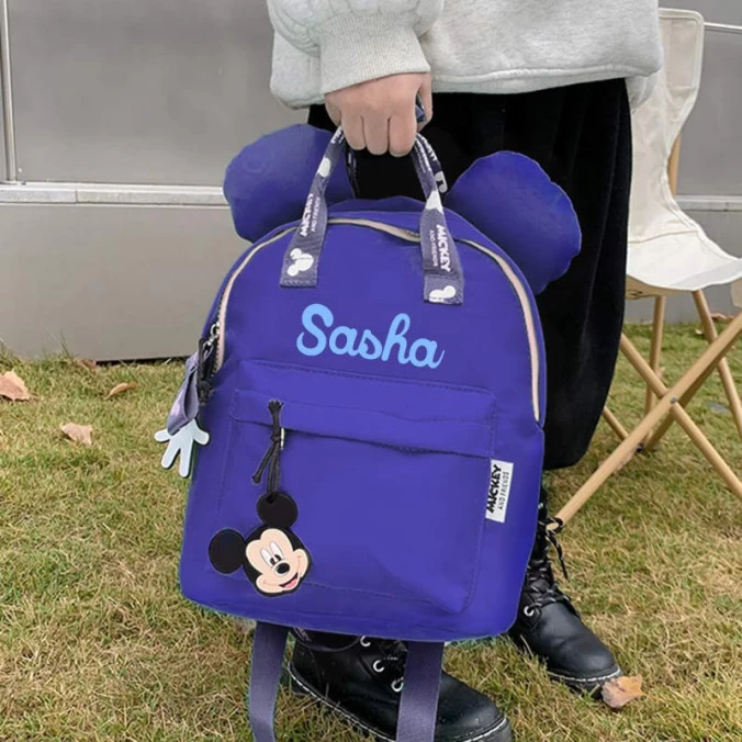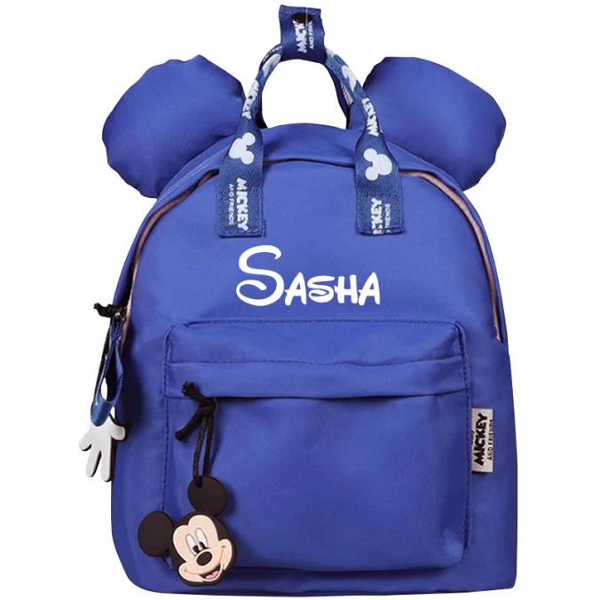 À l’effigie de Mickey, le célèbre personnage de Disney, ce sac à dos de couleur bleu électrique est personnalisé gratuitement par broderie au prénom de votre enfant.