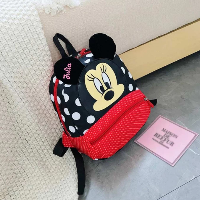 À l’effigie de Minnie la célèbre petite souris de Disney, ce sac à dos est personnalisé gratuitement au prénom de votre choix par broderie.