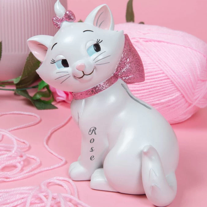 Cette tirelire à l’effigie l’adorable Marie des Aristochats, est personnalisée gratuitement au prénom de votre fille.